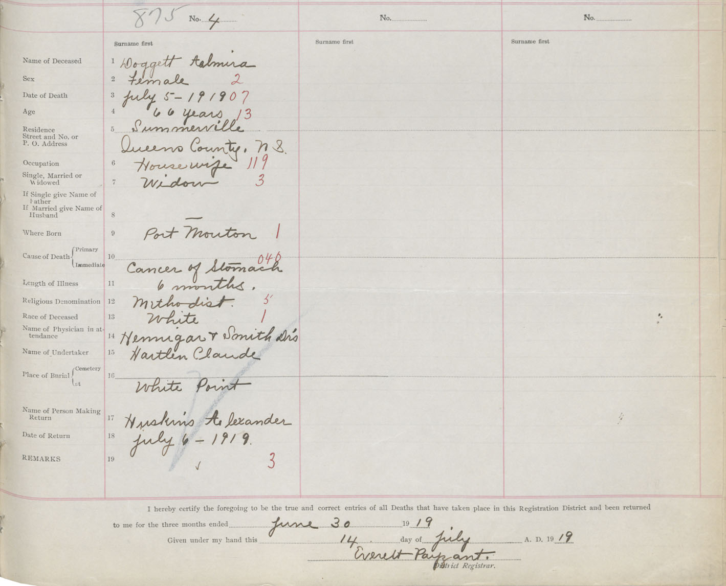 Death Registration: Year: 1919 book: 46 page: 363 number: 875