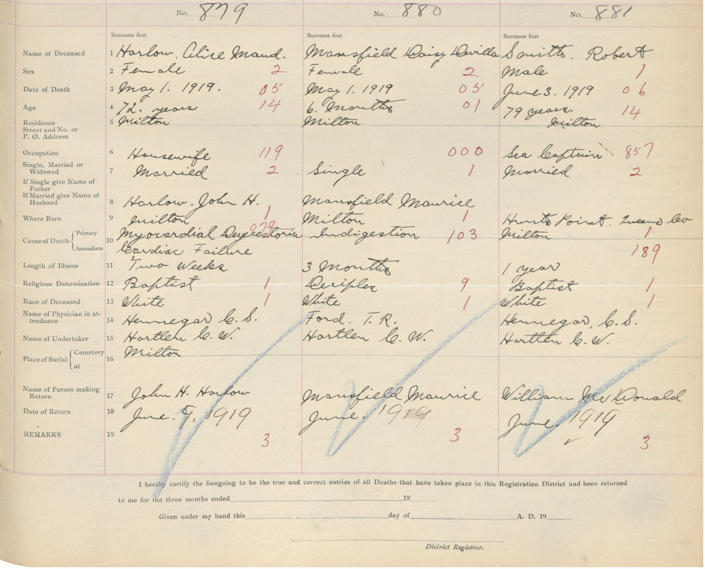 Death Registration: Year: 1919 book: 46 page: 365 number: 881