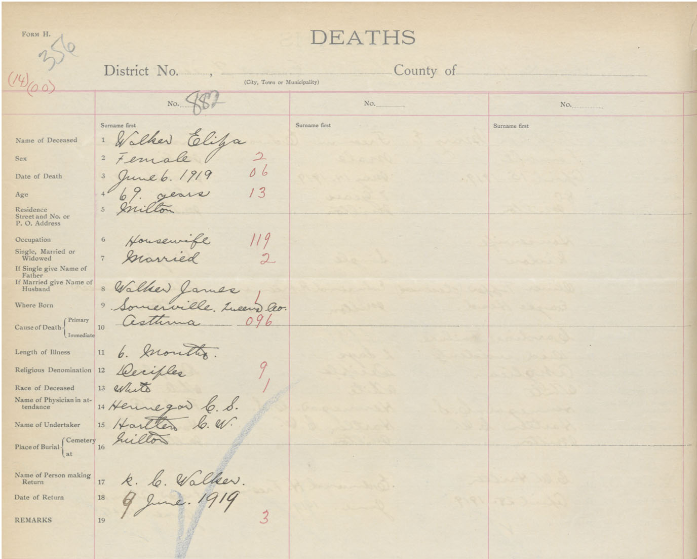 Death Registration: Year: 1919 book: 46 page: 366 number: 882