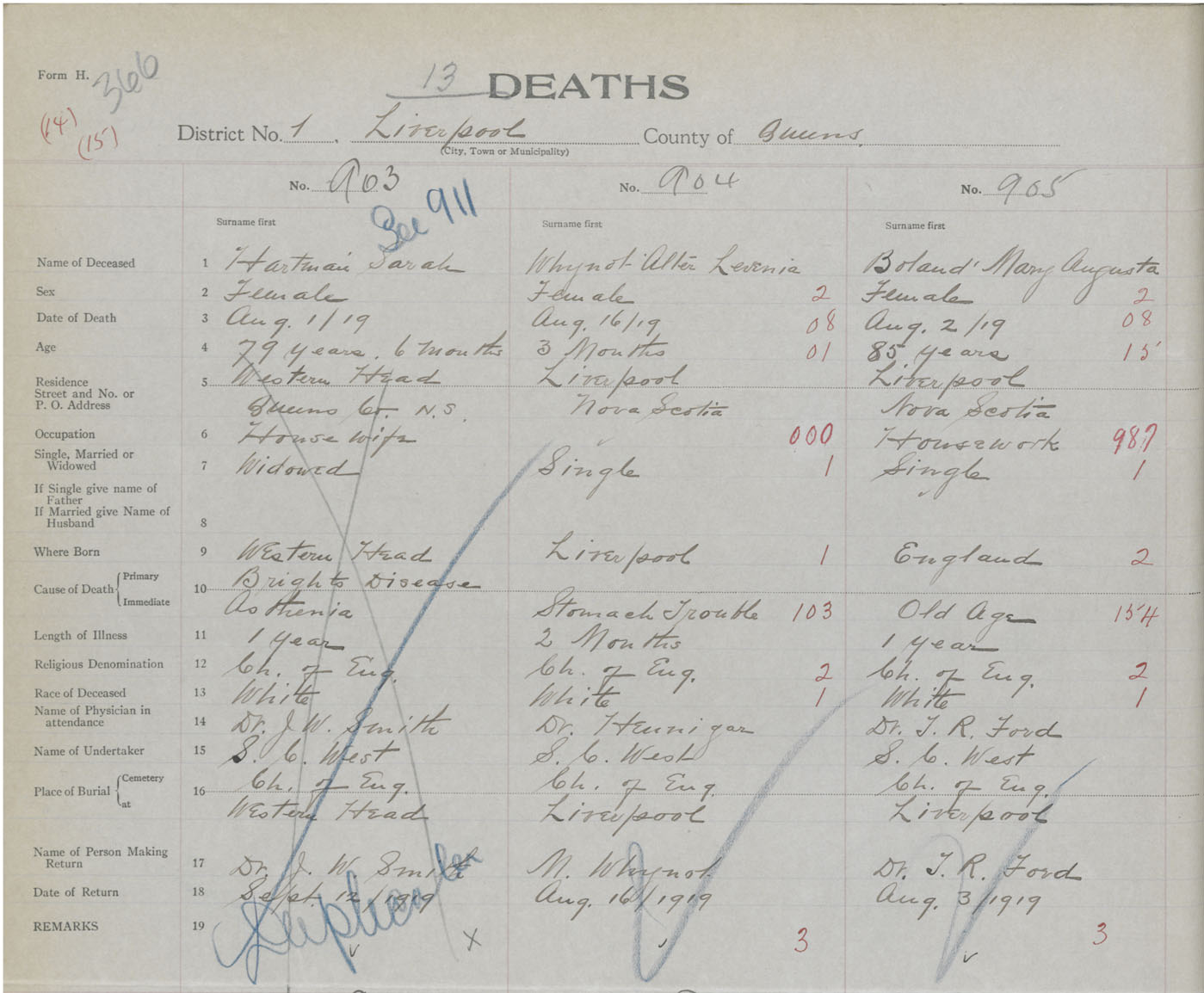 Death Registration: Year: 1919 book: 46 page: 376 number: 905