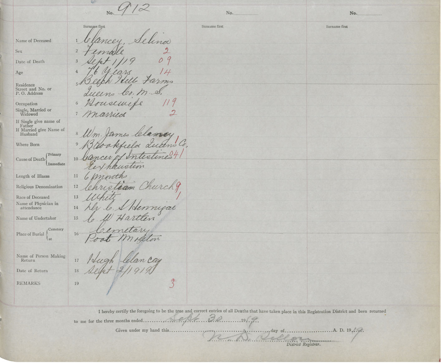 Death Registration: Year: 1919 book: 46 page: 377 number: 912