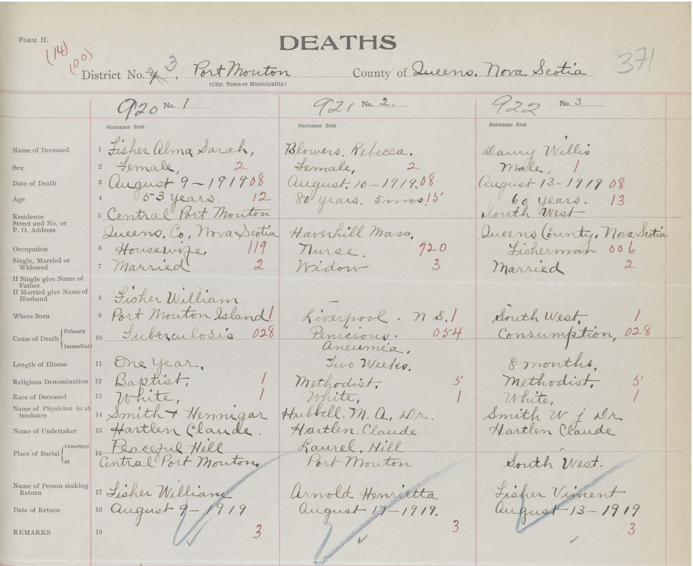 Death Registration: Year: 1919 book: 46 page: 381 number: 922