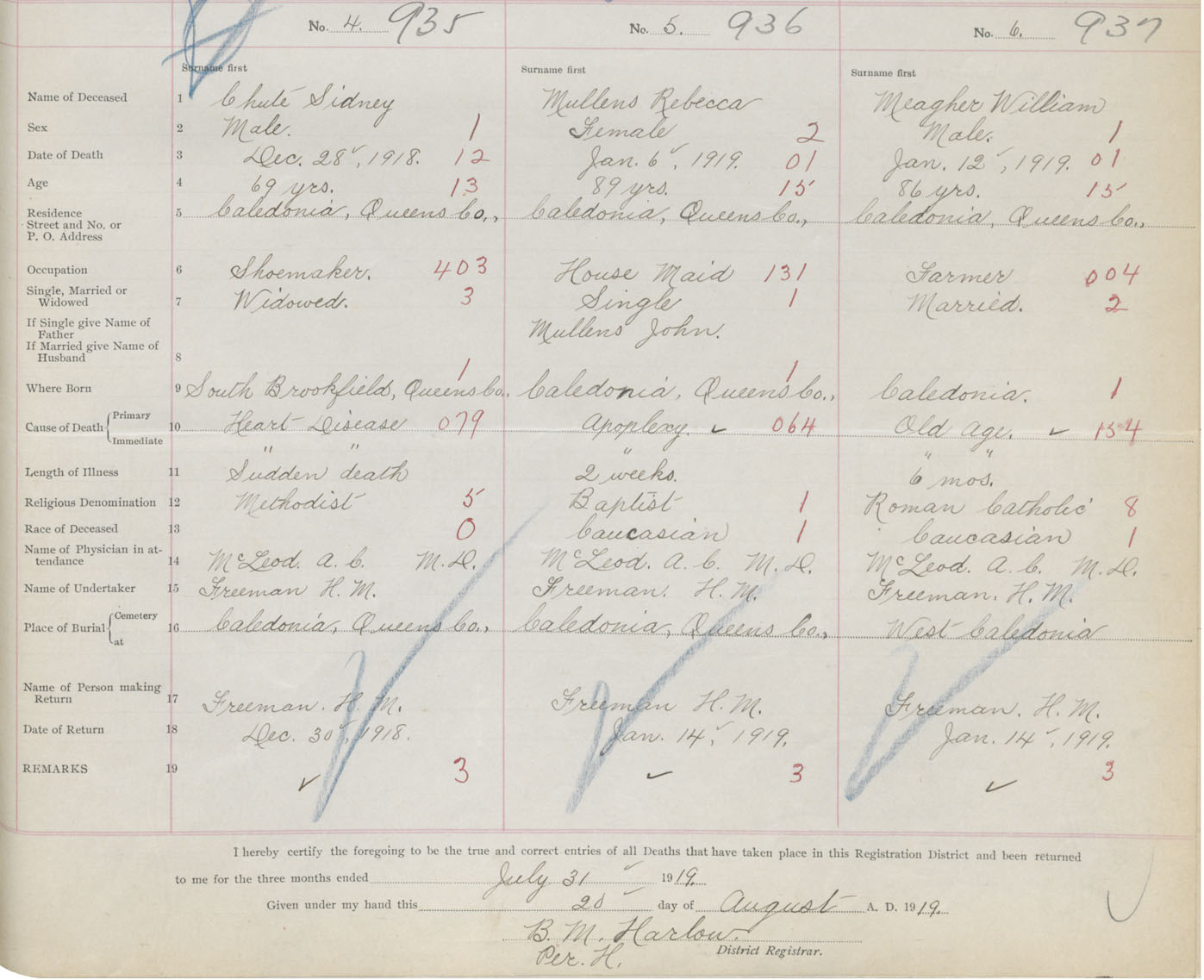 Death Registration: Year: 1919 book: 46 page: 387 number: 937