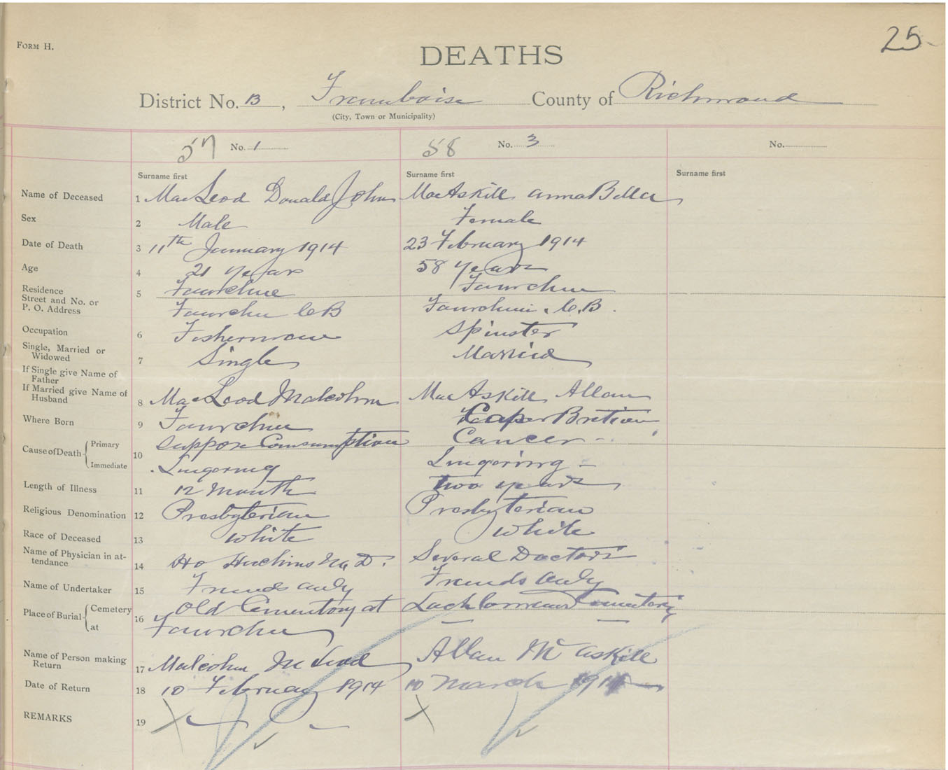 Male Death Registration: Year: 1914 book: 47 page: 25 number: 57