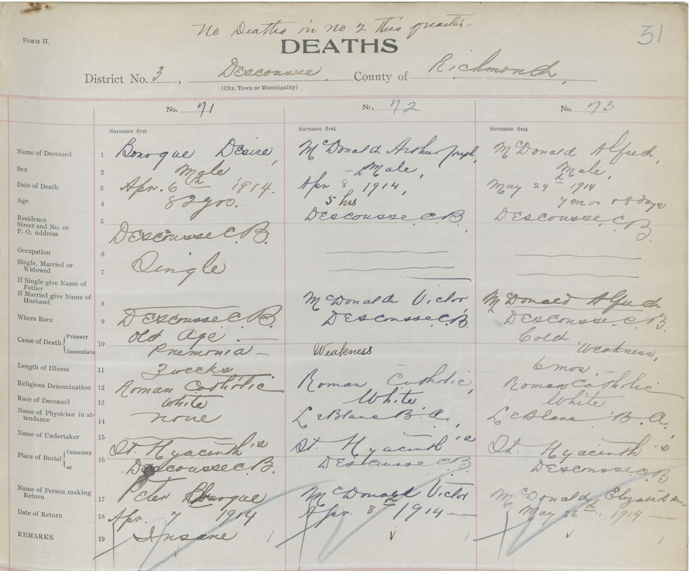 Male Death Registration: Year: 1914 book: 47 page: 31 number: 71