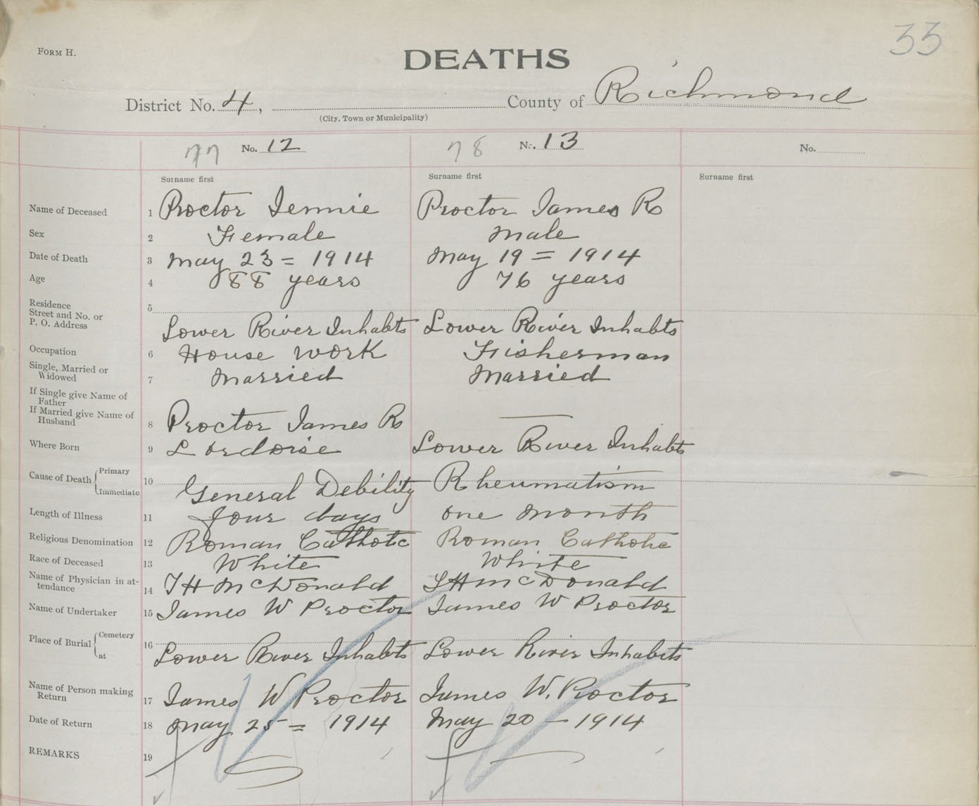 Female Death Registration: Year: 1914 book: 47 page: 33 number: 77