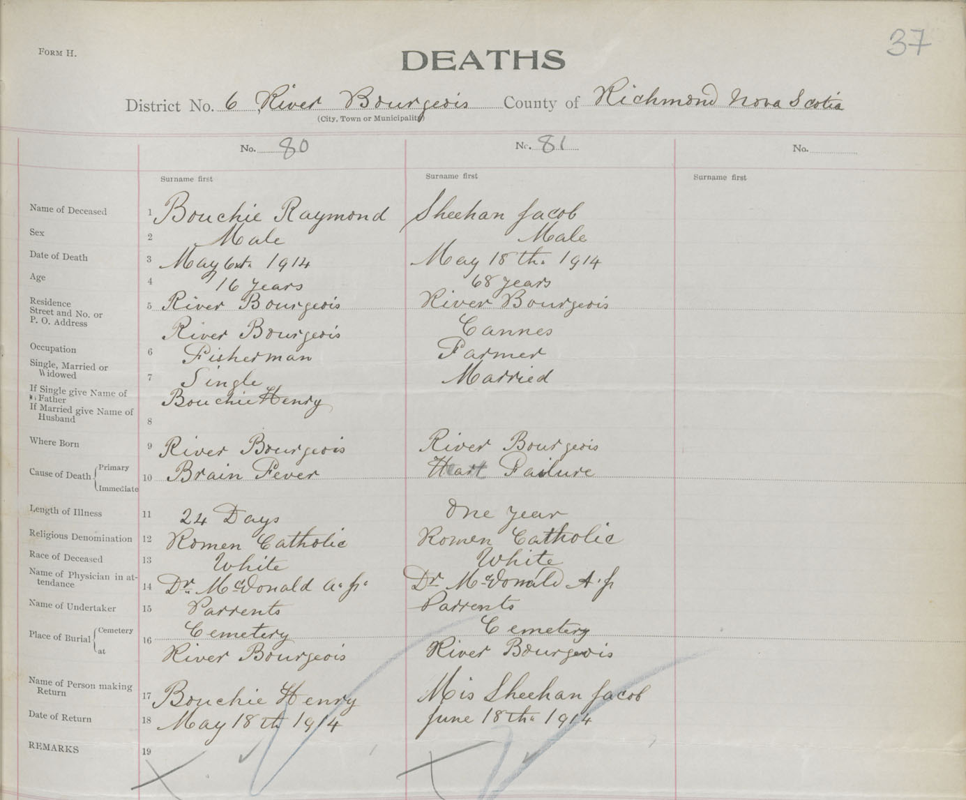 Male Death Registration: Year: 1914 book: 47 page: 37 number: 80
