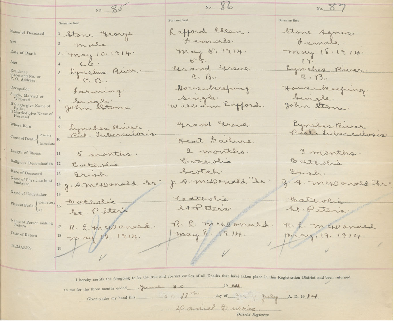 Female Death Registration: Year: 1914 book: 47 page: 39 number: 87