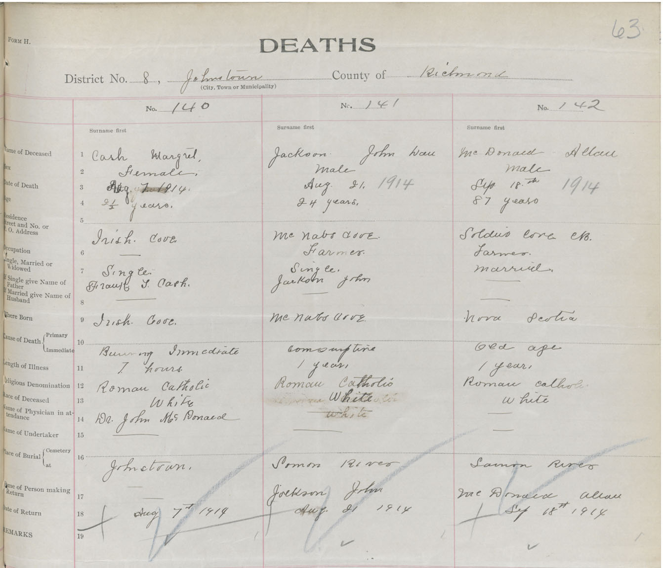 Female Death Registration: Year: 1914 book: 47 page: 63 number: 140