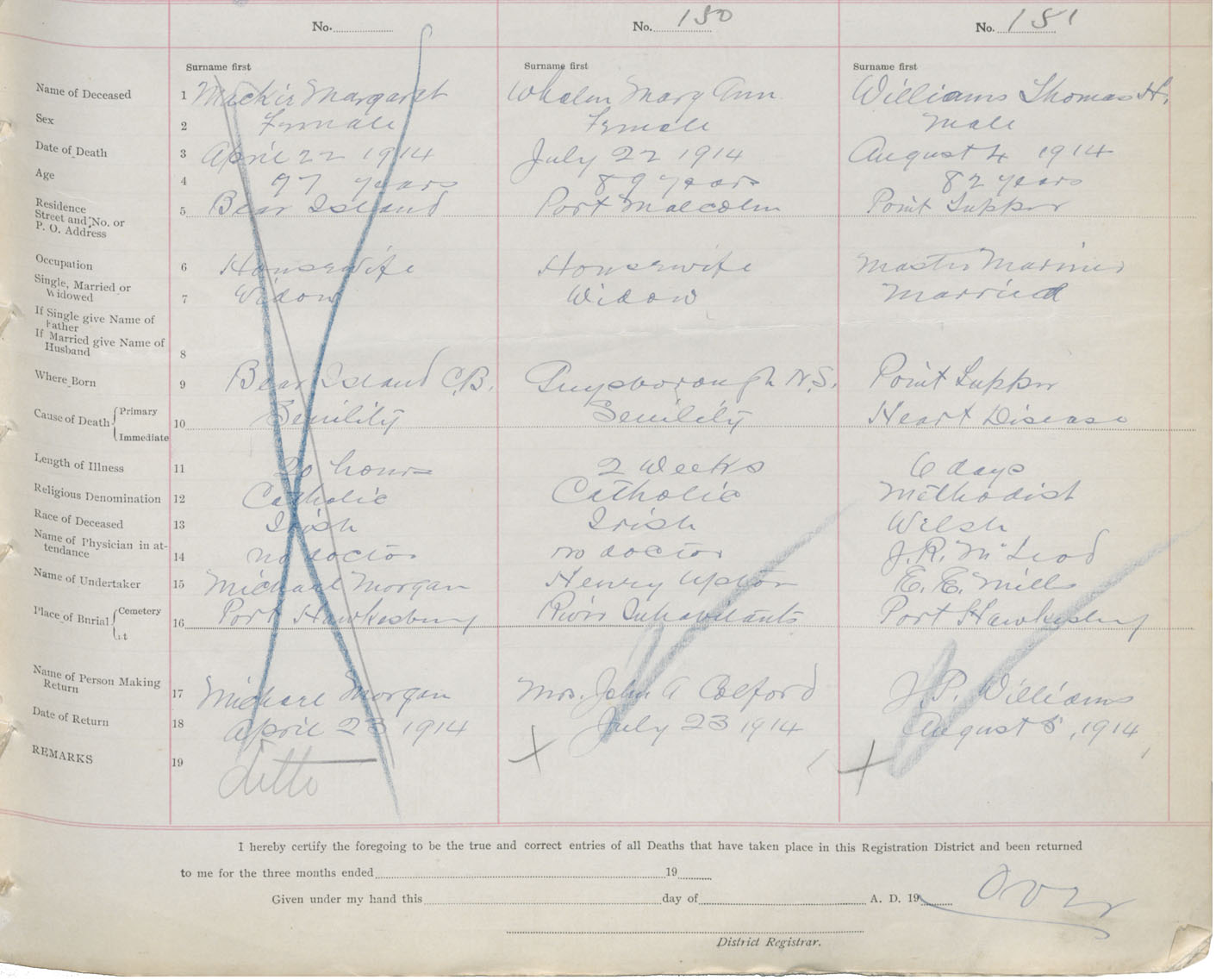 Female Death Registration: Year: 1914 book: 47 page: 71 number: 150