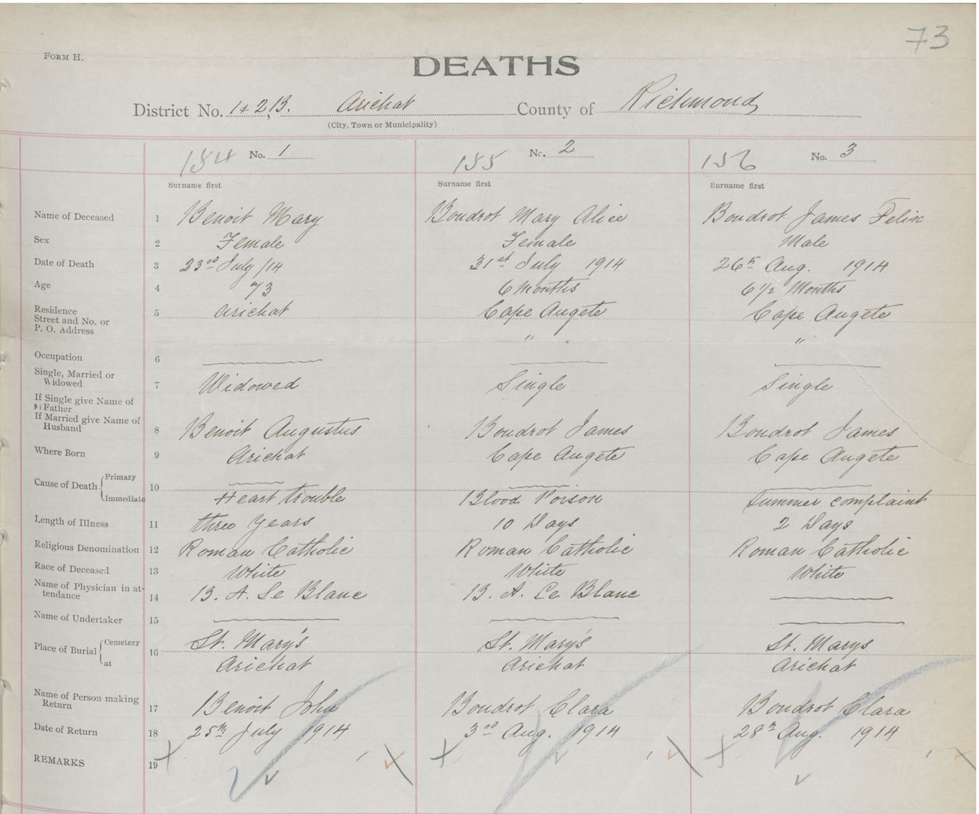 Female Death Registration: Year: 1914 book: 47 page: 73 number: 154