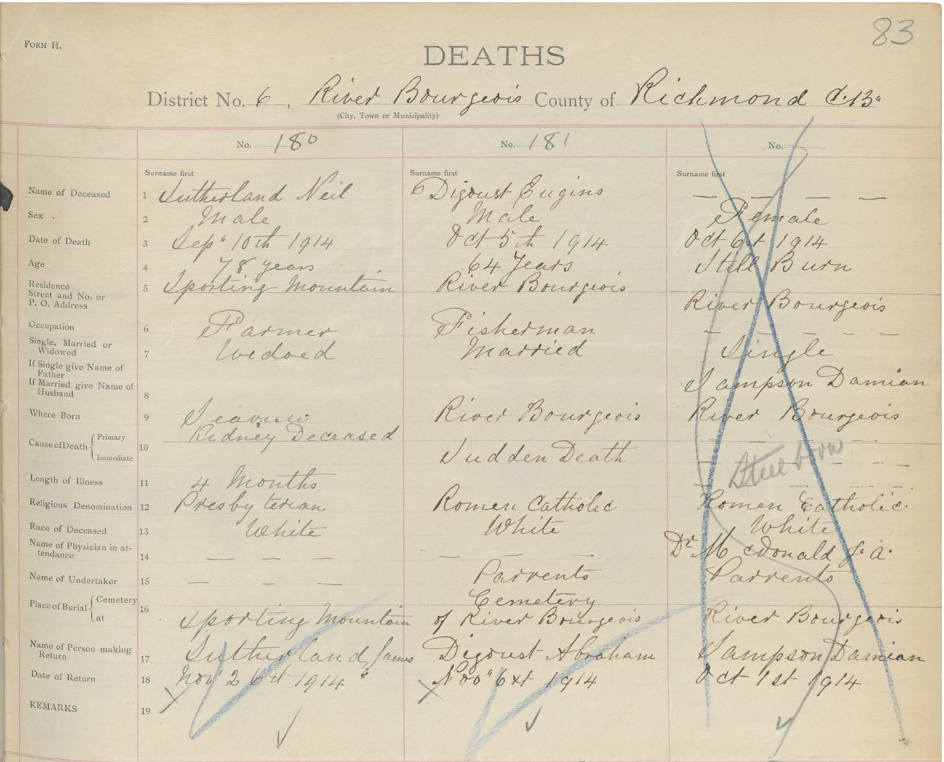 Male Death Registration: Year: 1914 book: 47 page: 83 number: 180