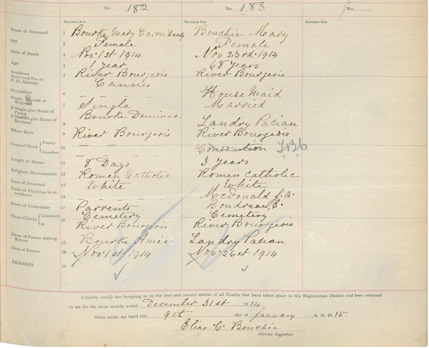 Female Death Registration: Year: 1914 book: 47 page: 83 number: 182