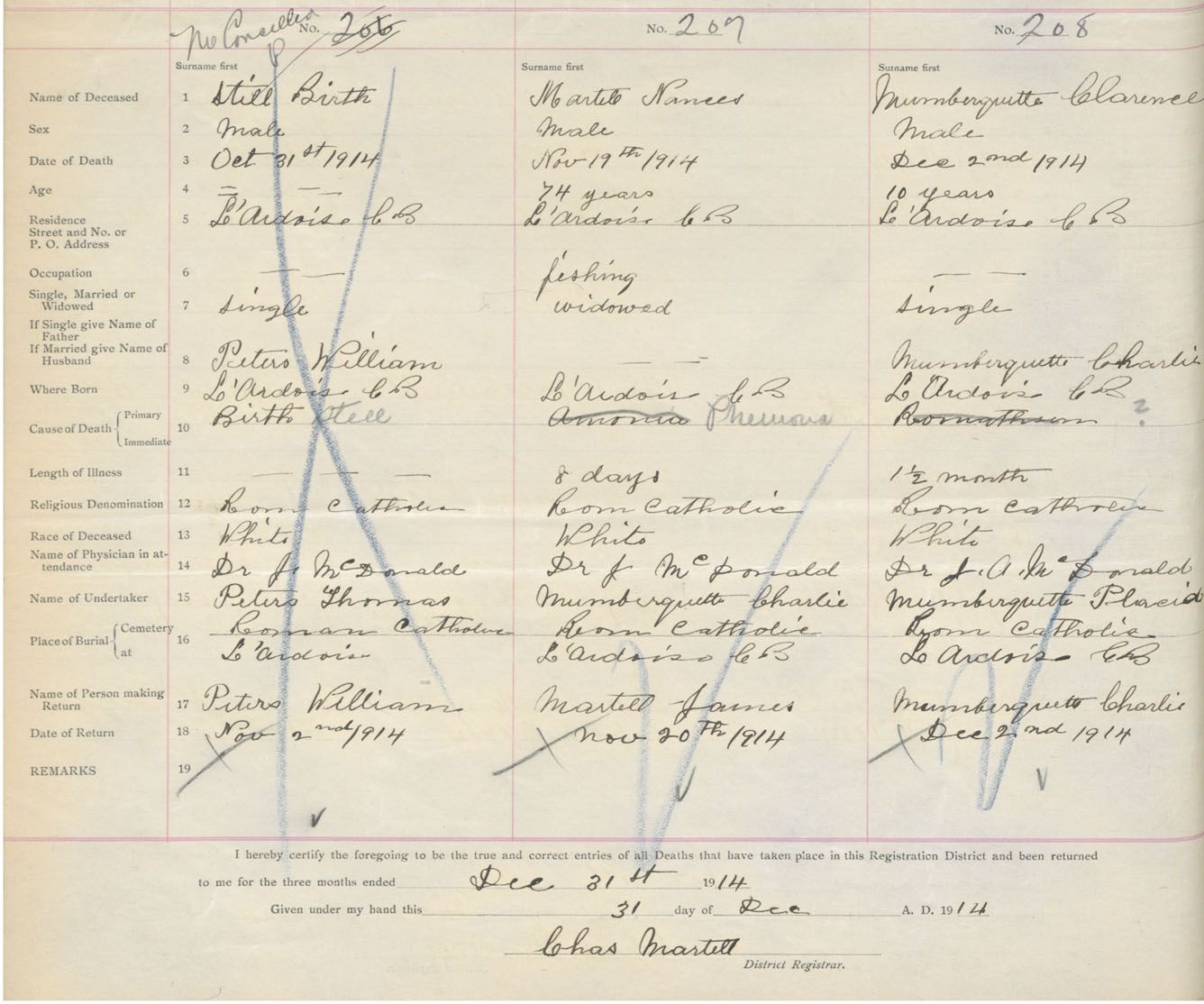 Male Death Registration: Year: 1914 book: 47 page: 92 number: 208