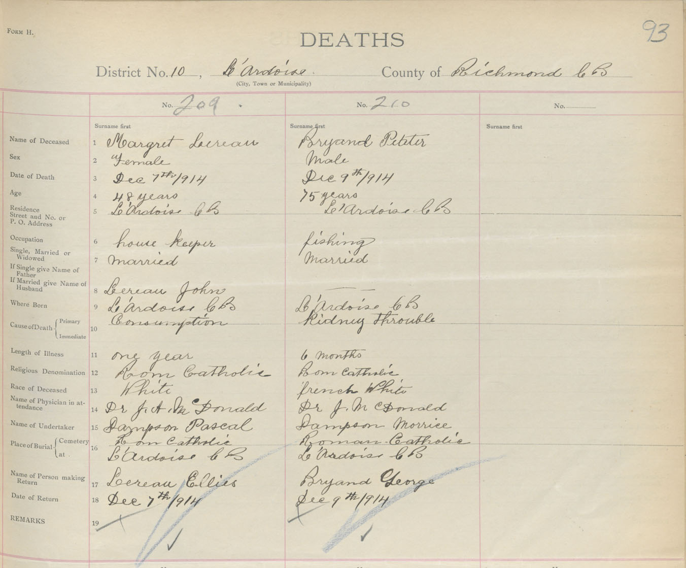 Male Death Registration: Year: 1914 book: 47 page: 93 number: 210