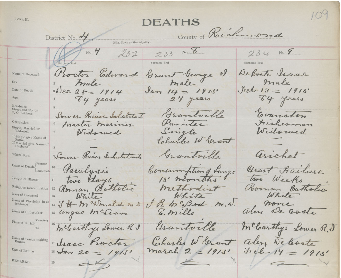 Male Death Registration: Year: 1915 book: 47 page: 109 number: 236