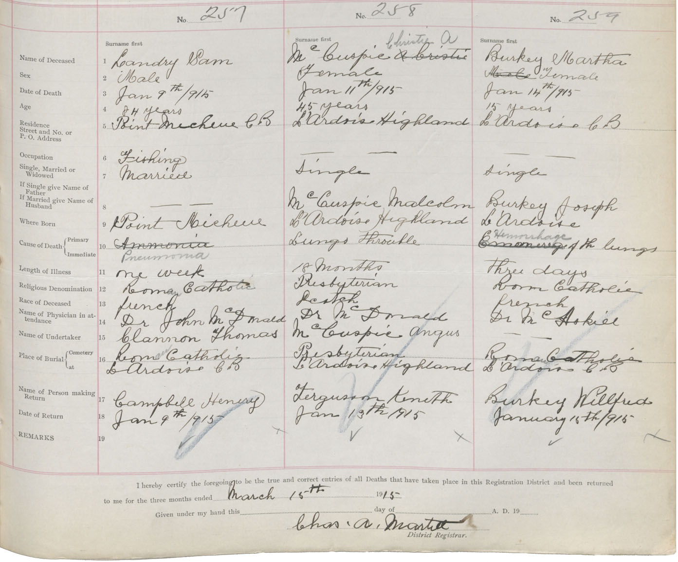 Female Death Registration: Year: 1915 book: 47 page: 119 number: 259