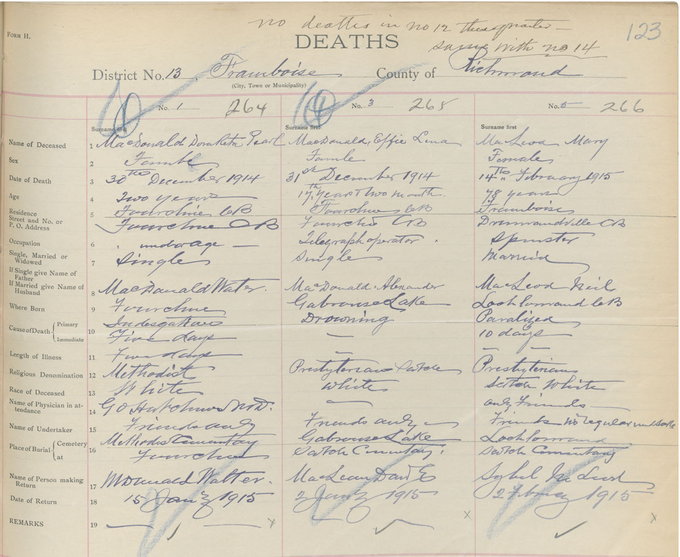 Female Death Registration: Year: 1914 book: 47 page: 123 number: 264