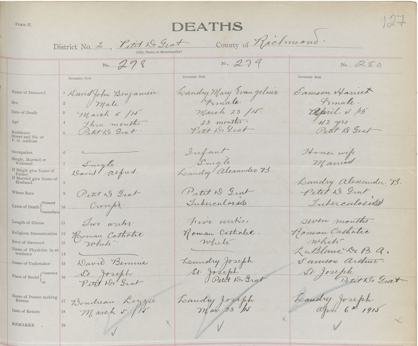 Male Death Registration: Year: 1915 book: 47 page: 127 number: 278