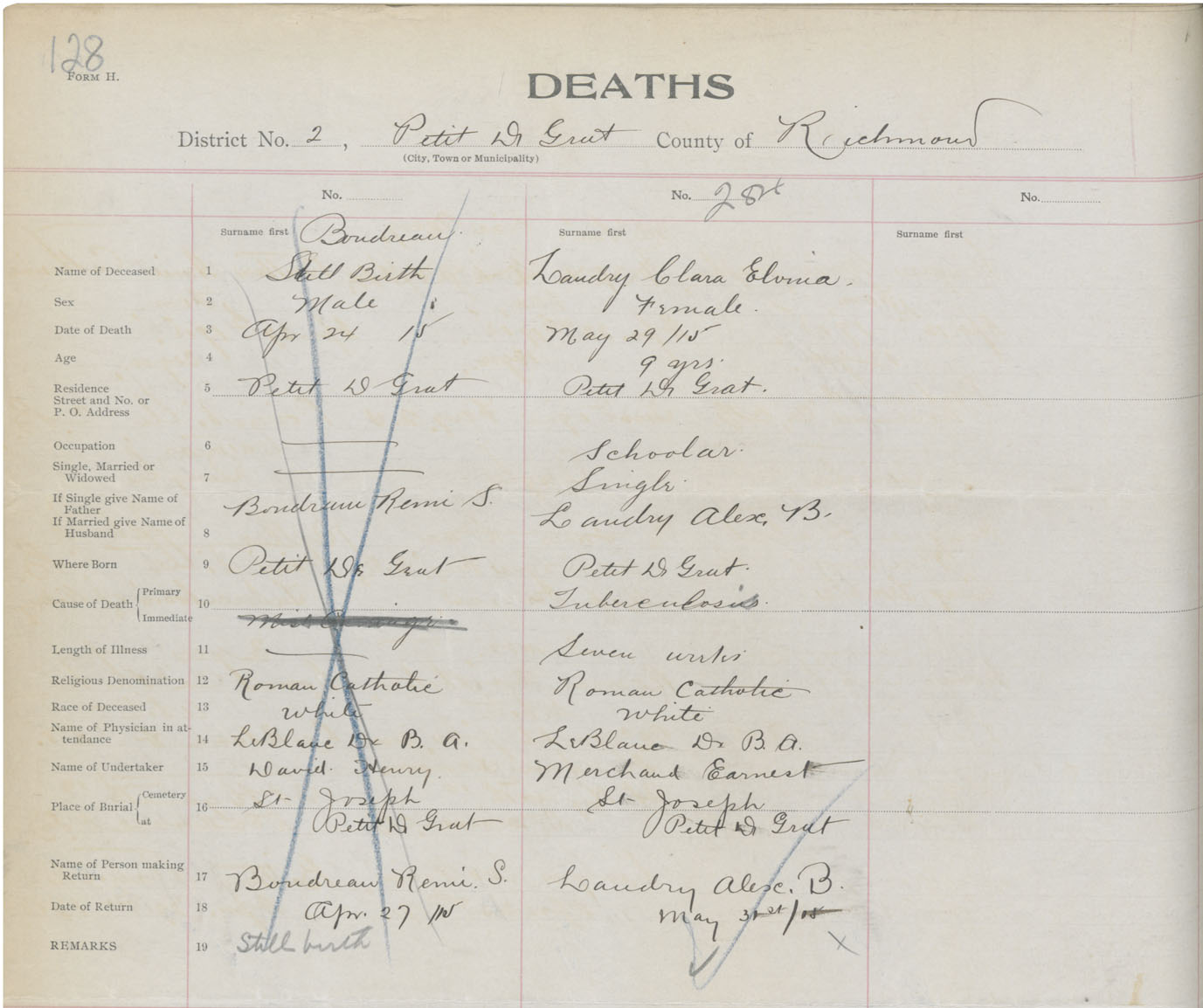 Female Death Registration: Year: 1915 book: 47 page: 128 number: 284