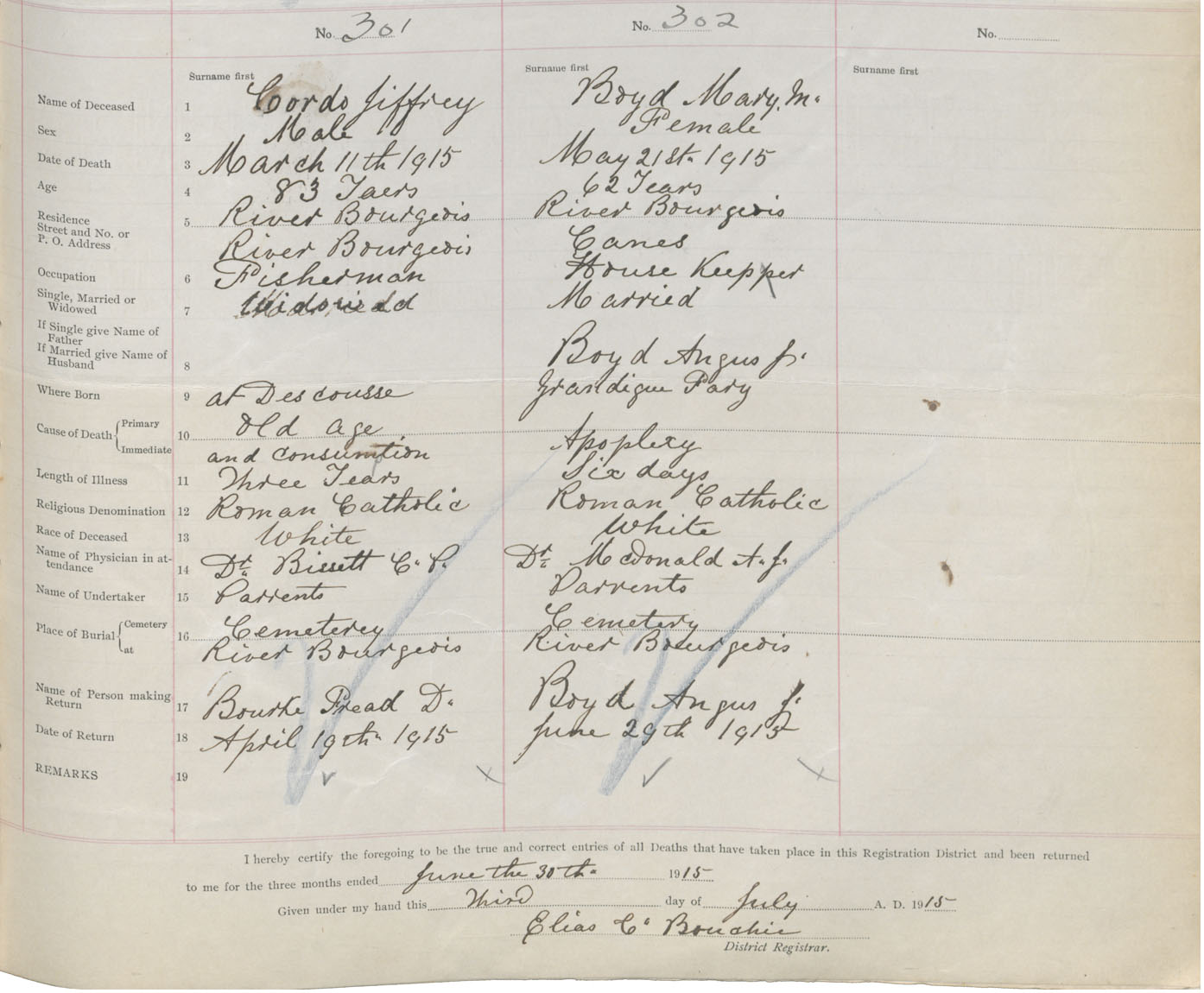Female Death Registration: Year: 1915 book: 47 page: 133 number: 302