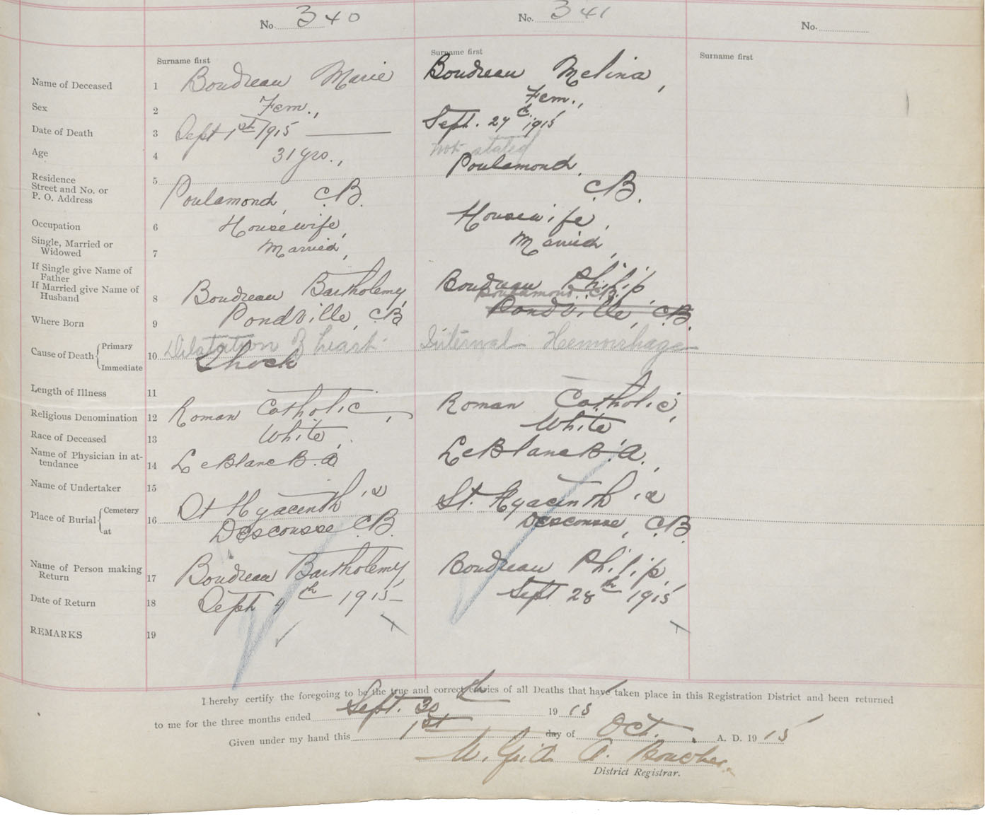 Female Death Registration: Year: 1915 book: 47 page: 155 number: 341
