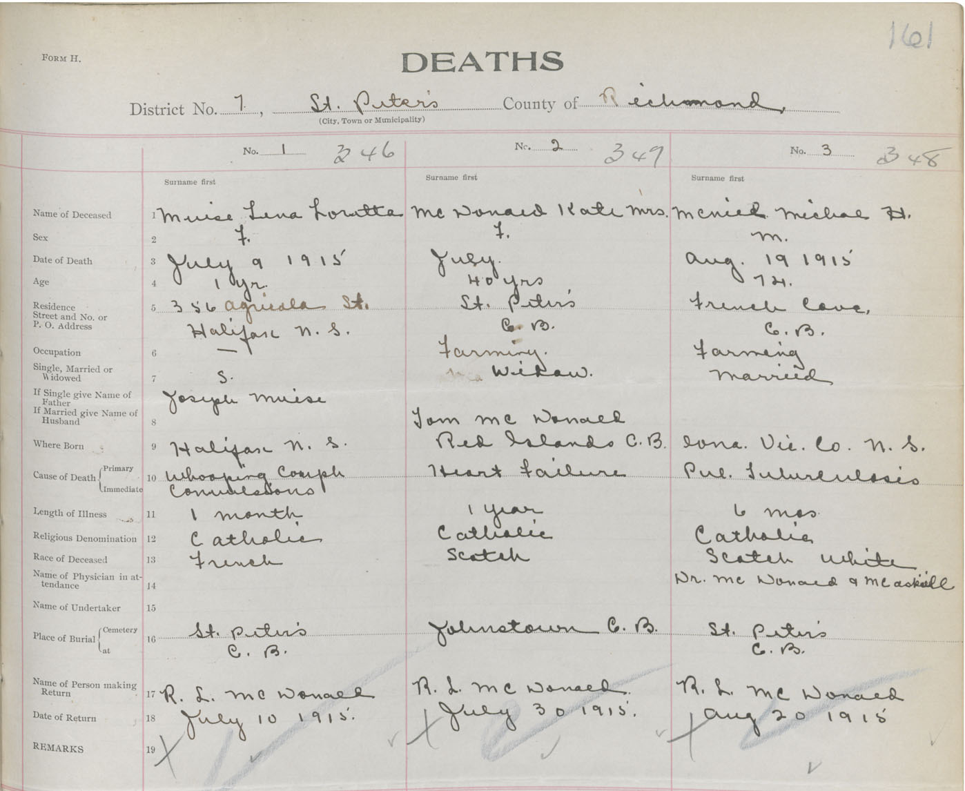 Male Death Registration: Year: 1915 book: 47 page: 161 number: 349
