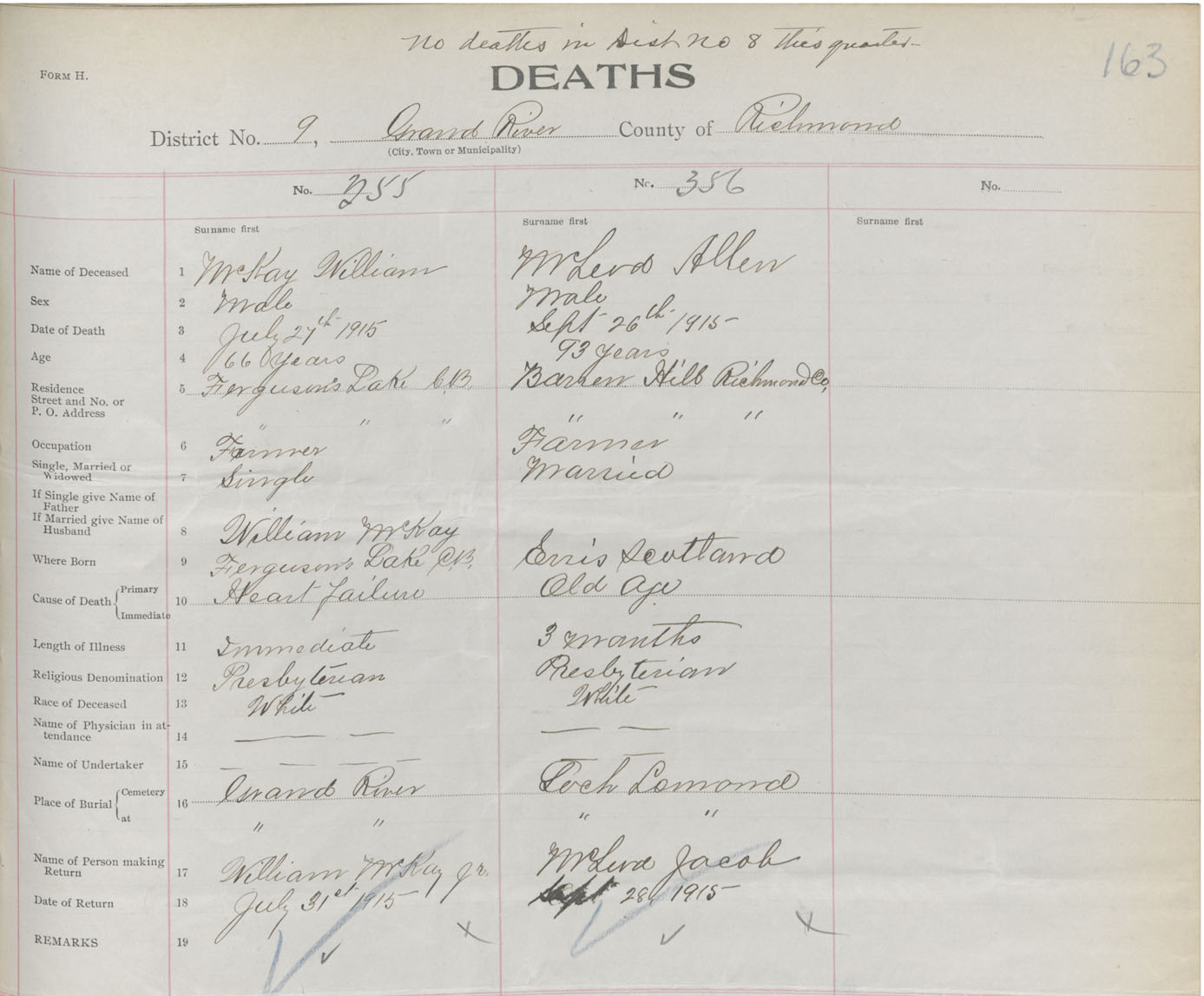 Male Death Registration: Year: 1915 book: 47 page: 163 number: 355