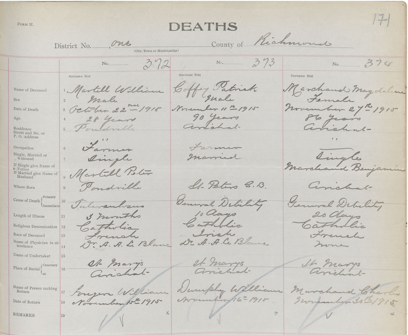 Male Death Registration: Year: 1915 book: 47 page: 171 number: 372