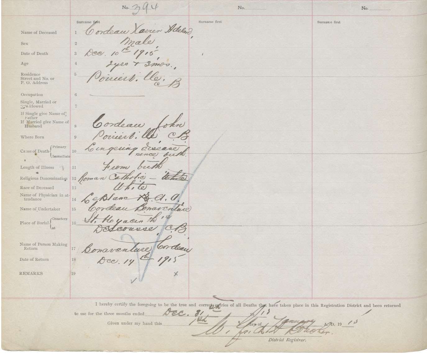 Male Death Registration: Year: 1915 book: 47 page: 176 number: 394