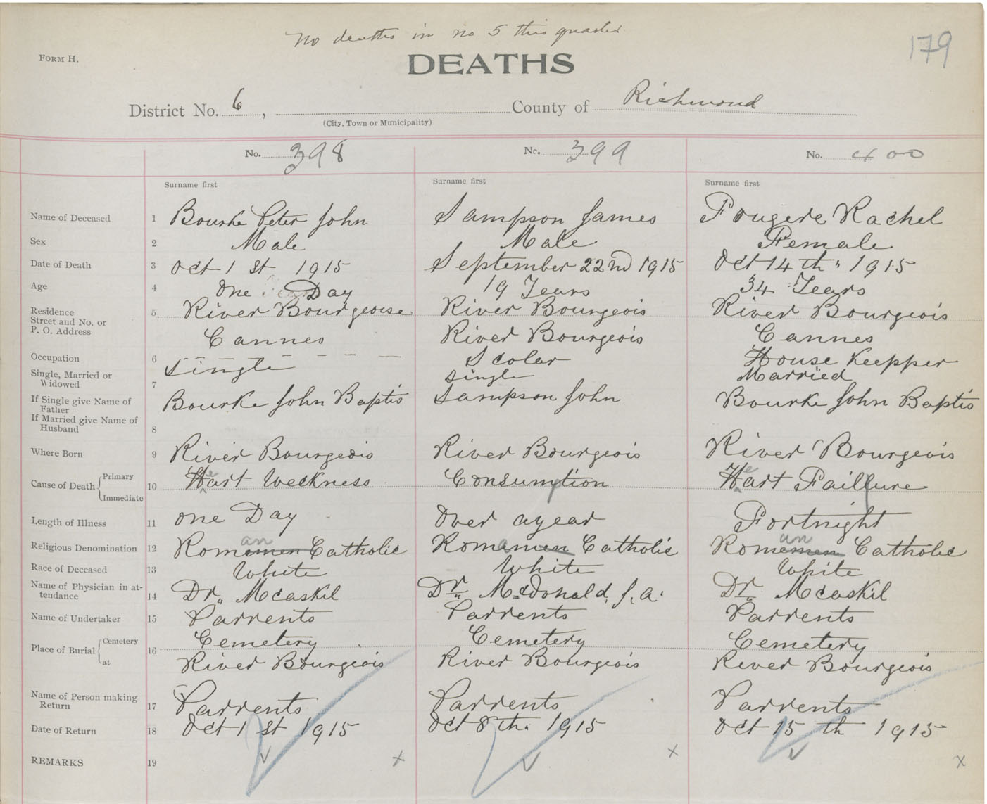 Male Death Registration: Year: 1915 book: 47 page: 179 number: 398