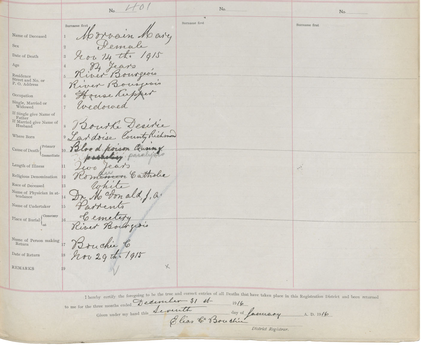 Female Death Registration: Year: 1915 book: 47 page: 179 number: 401
