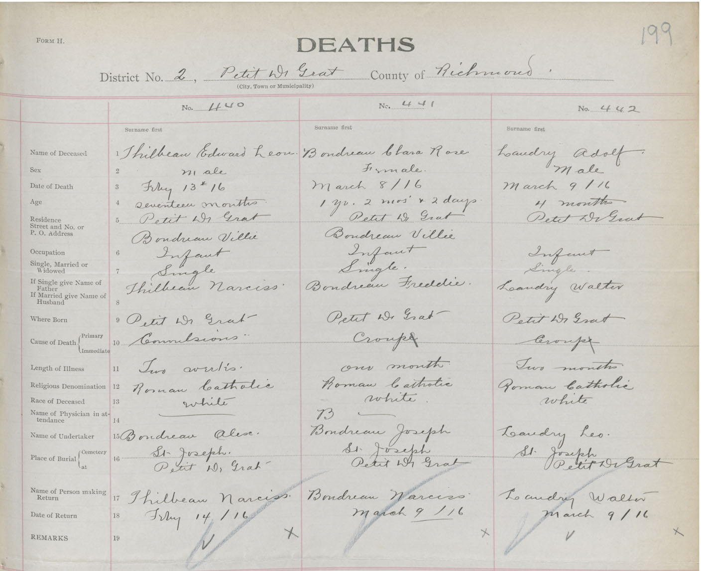 Male Death Registration: Year: 1916 book: 47 page: 199 number: 442