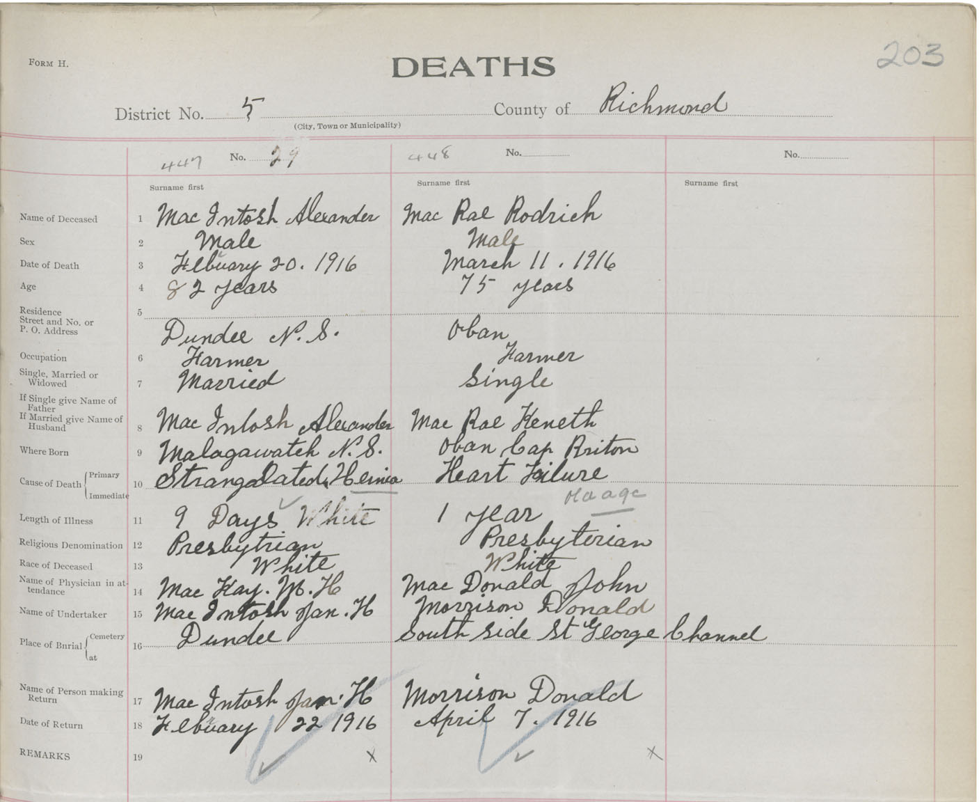 Male Death Registration: Year: 1916 book: 47 page: 203 number: 448