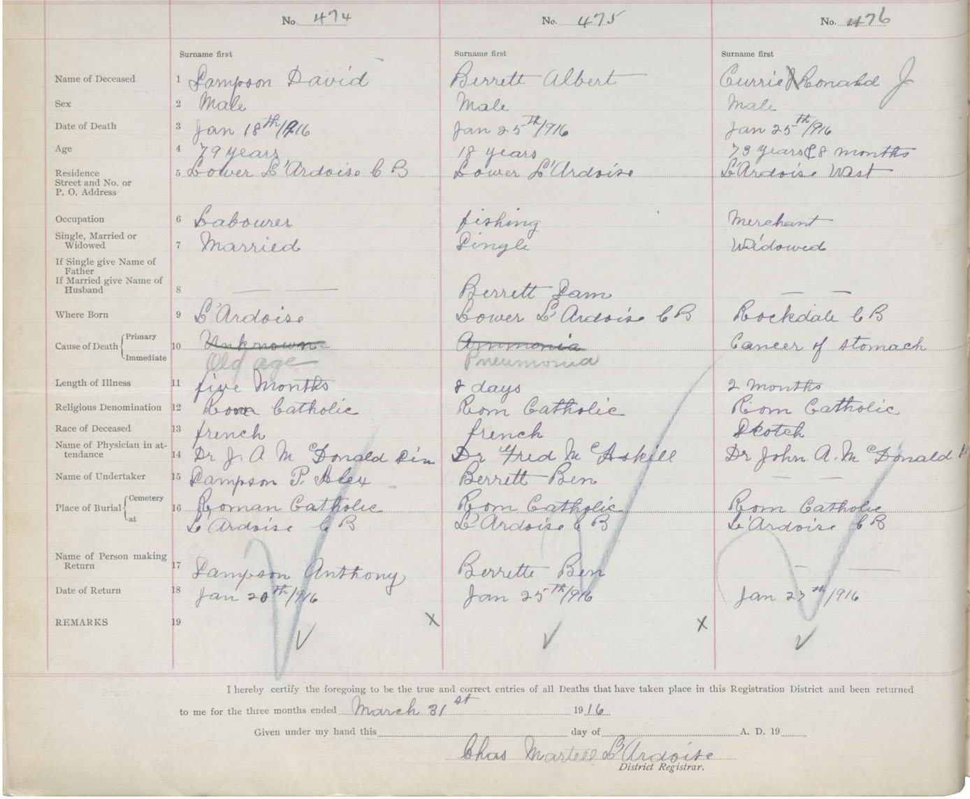 Male Death Registration: Year: 1916 book: 47 page: 214 number: 476