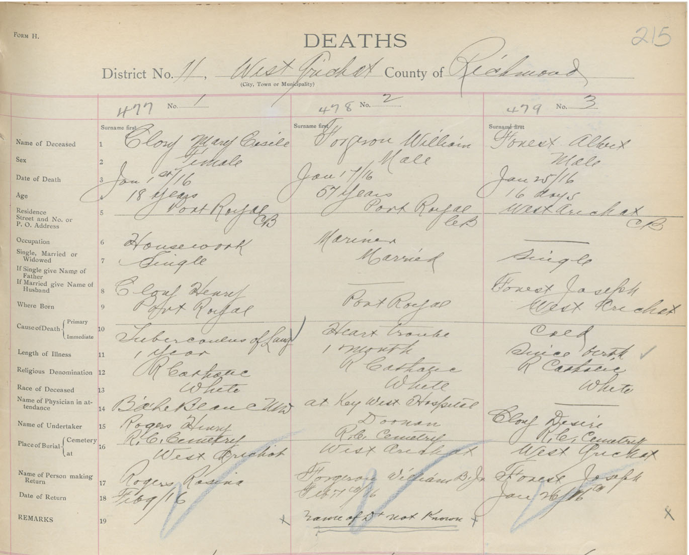Male Death Registration: Year: 1916 book: 47 page: 215 number: 479