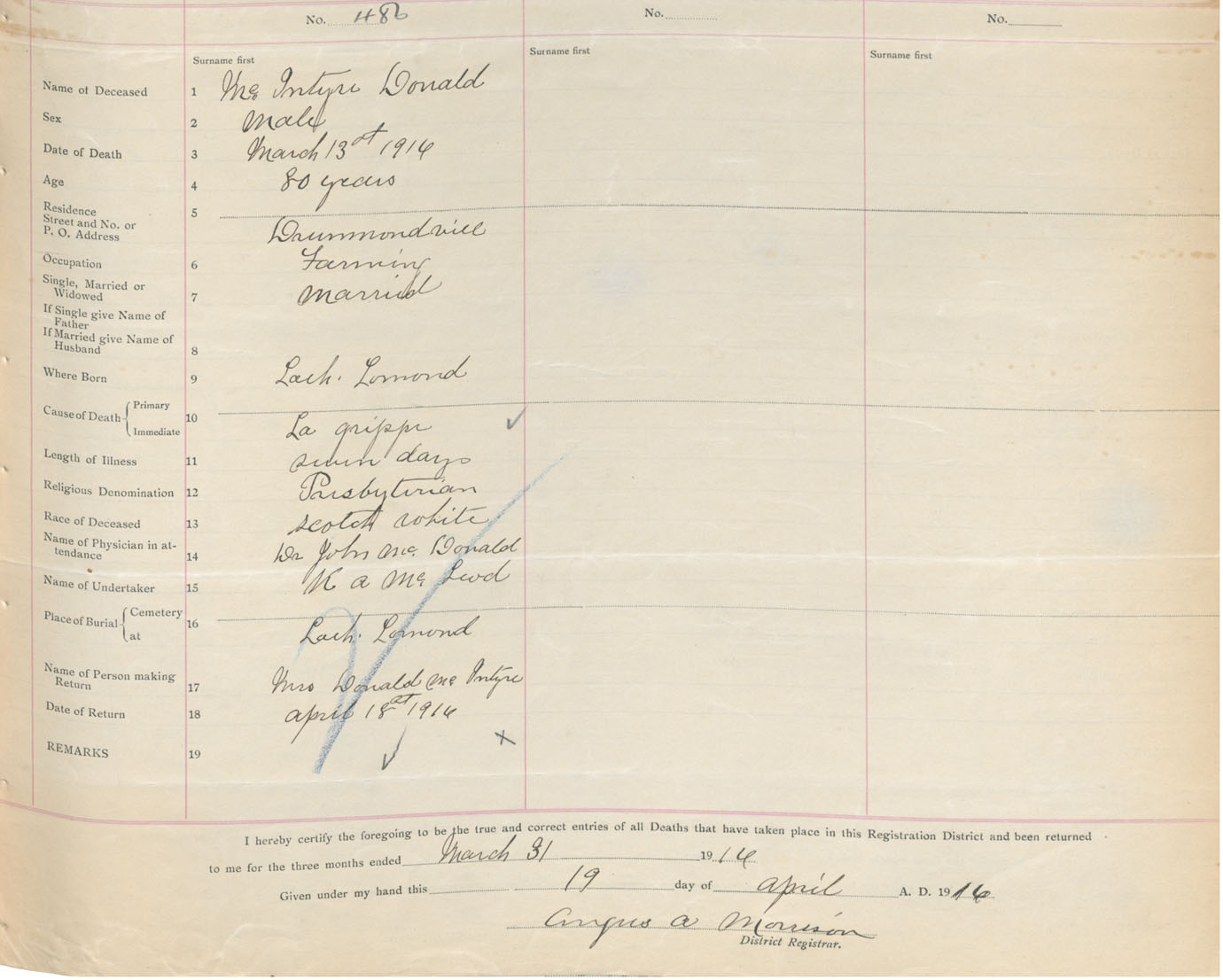 Male Death Registration: Year: 1916 book: 47 page: 219 number: 486
