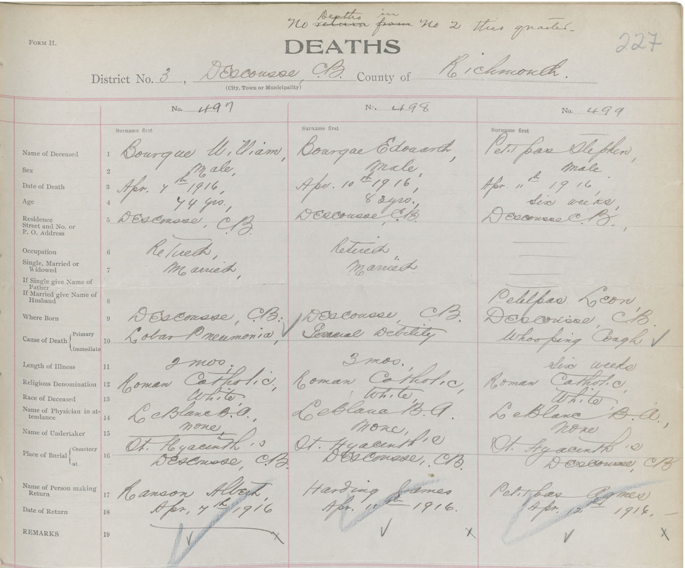 Male Death Registration: Year: 1916 book: 47 page: 227 number: 499
