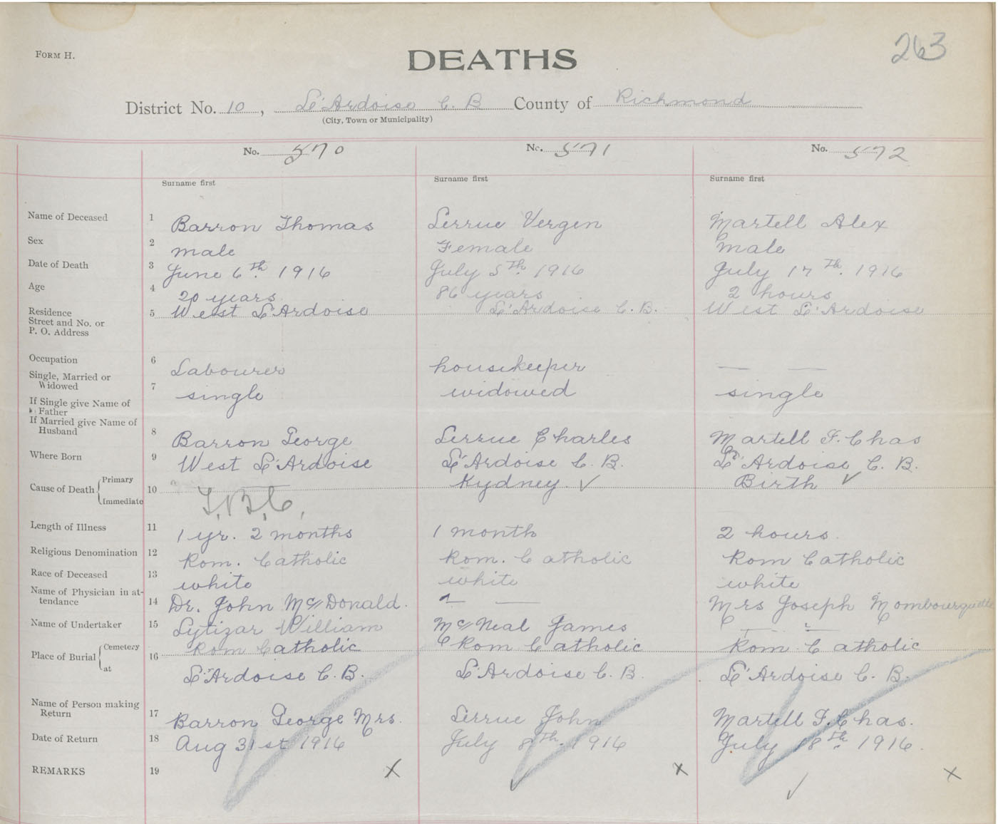 Male Death Registration: Year: 1916 book: 47 page: 263 number: 570