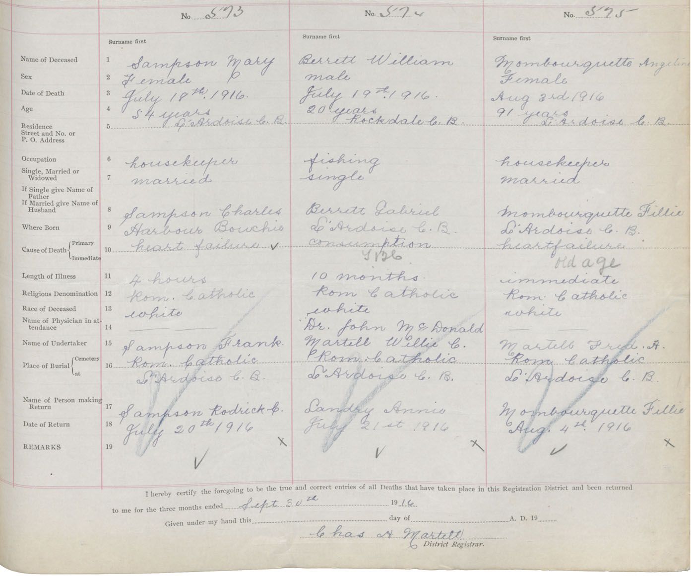 Female Death Registration: Year: 1916 book: 47 page: 263 number: 573