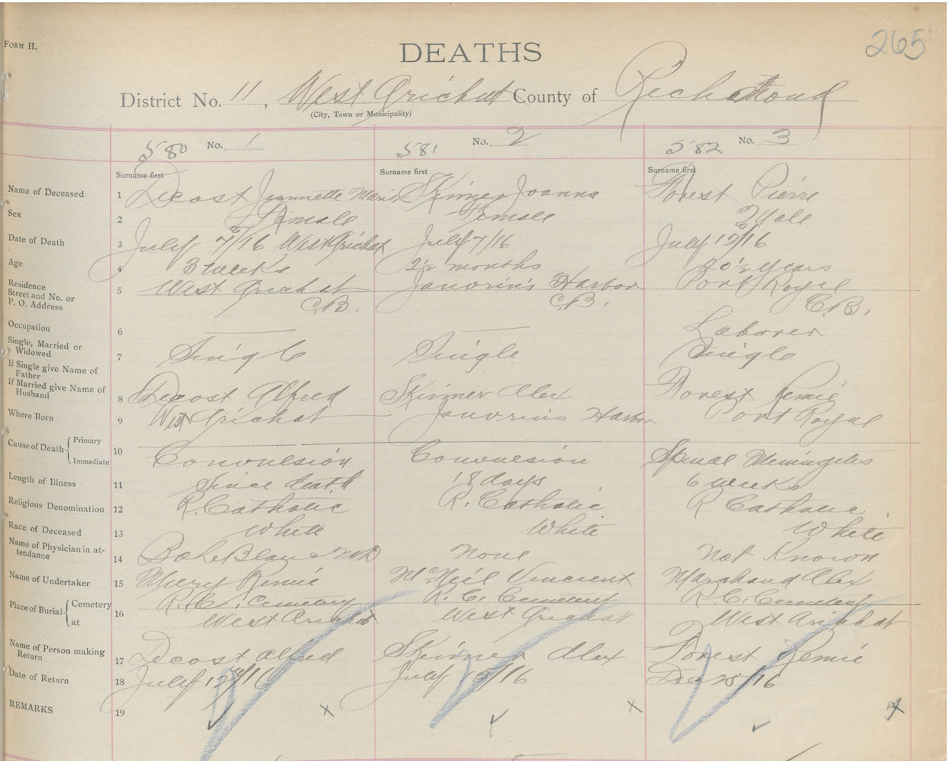 Female Death Registration: Year: 1916 book: 47 page: 265 number: 580