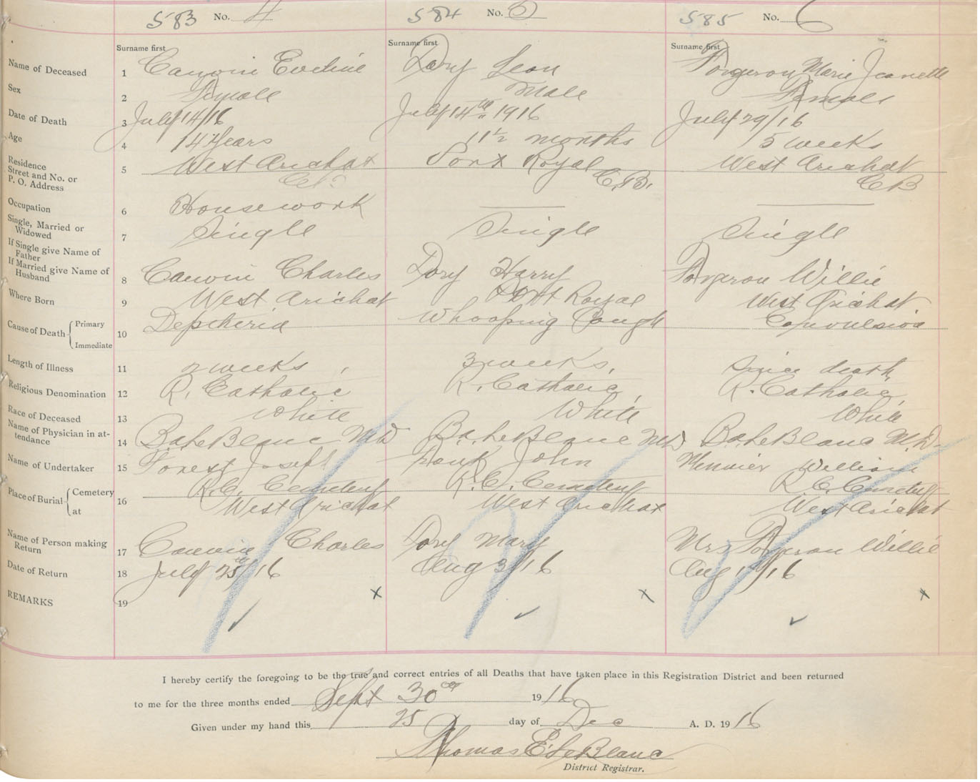 Female Death Registration: Year: 1916 book: 47 page: 265 number: 583