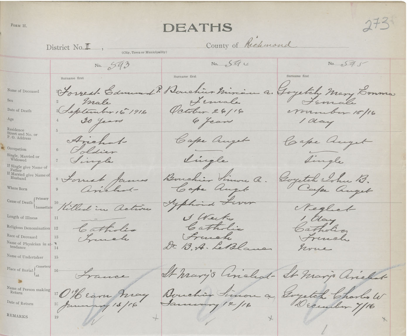 Male Death Registration: Year: 1916 book: 47 page: 273 number: 593