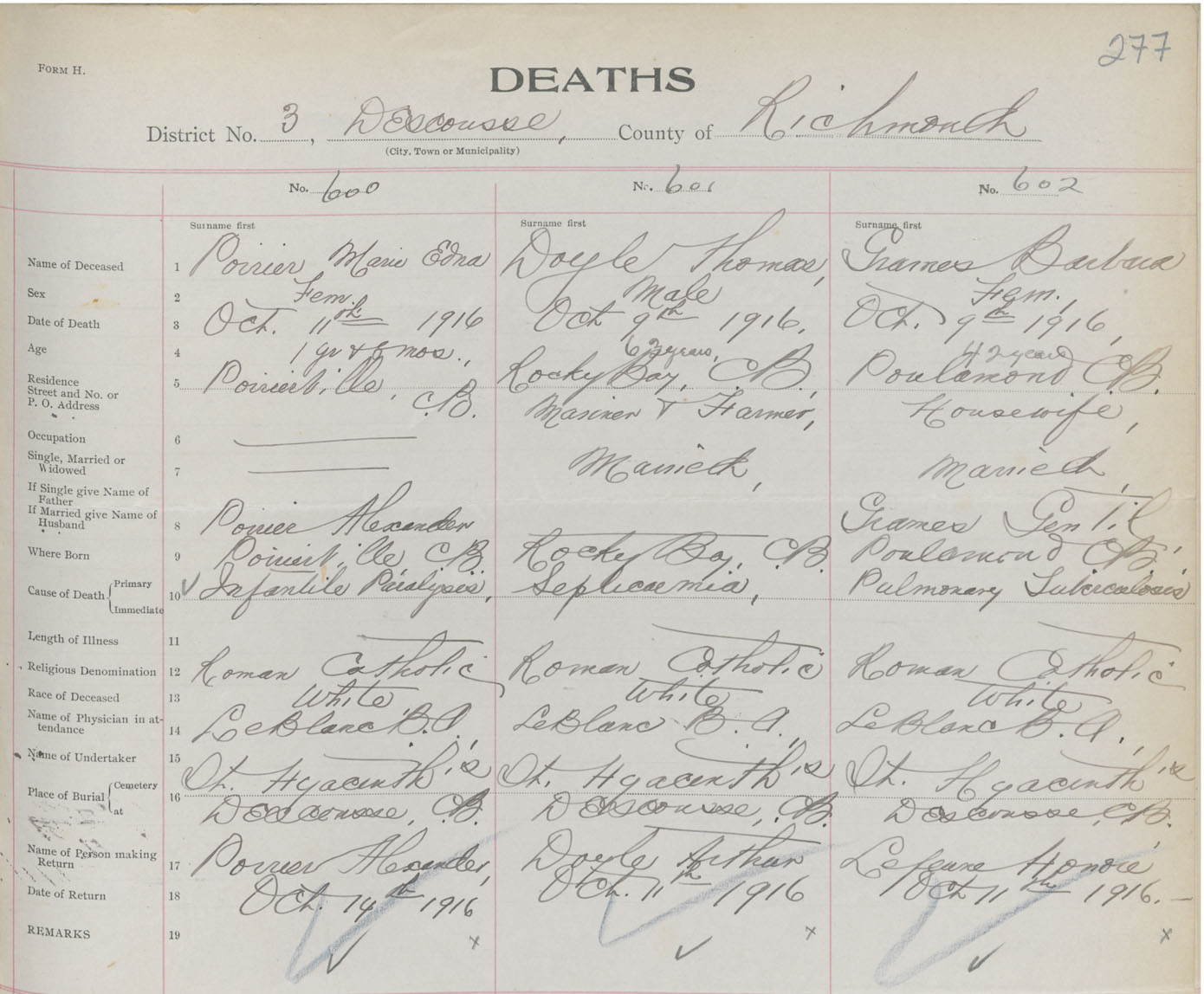 Female Death Registration: Year: 1916 book: 47 page: 277 number: 600