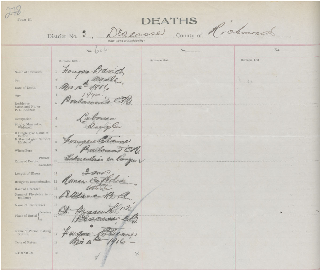 Male Death Registration: Year: 1916 book: 47 page: 278 number: 606