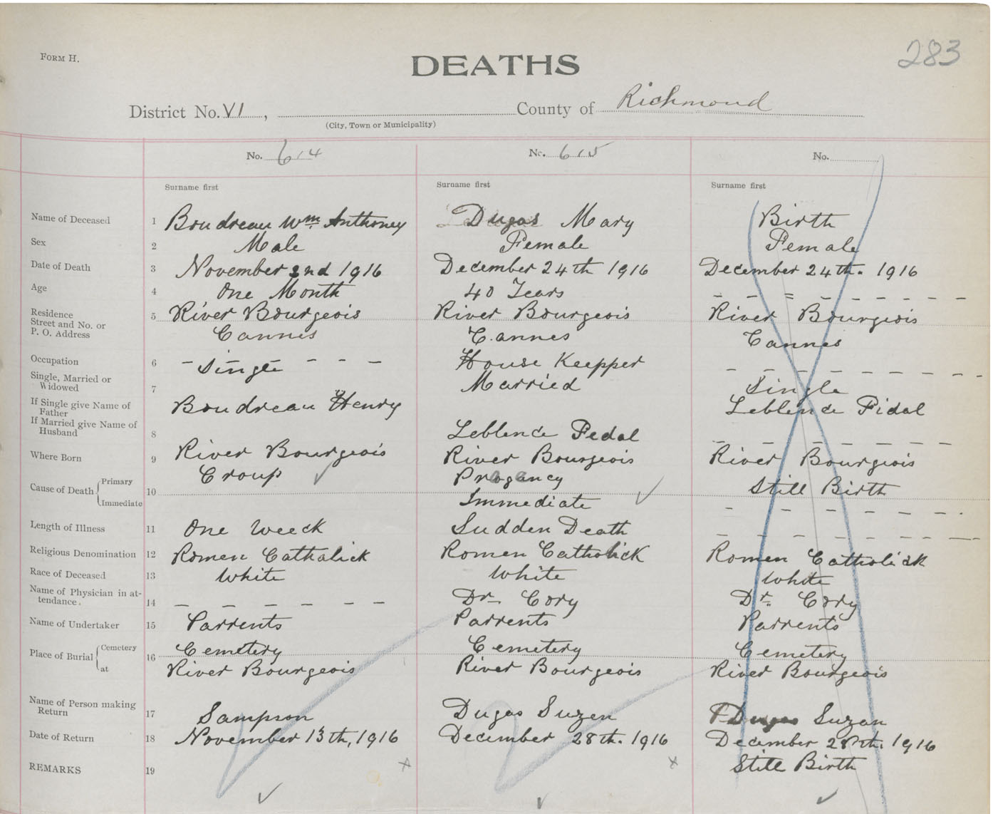 Male Death Registration: Year: 1916 book: 47 page: 283 number: 614