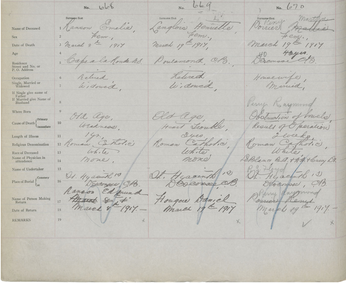 Female Death Registration: Year: 1917 book: 47 page: 306 number: 668
