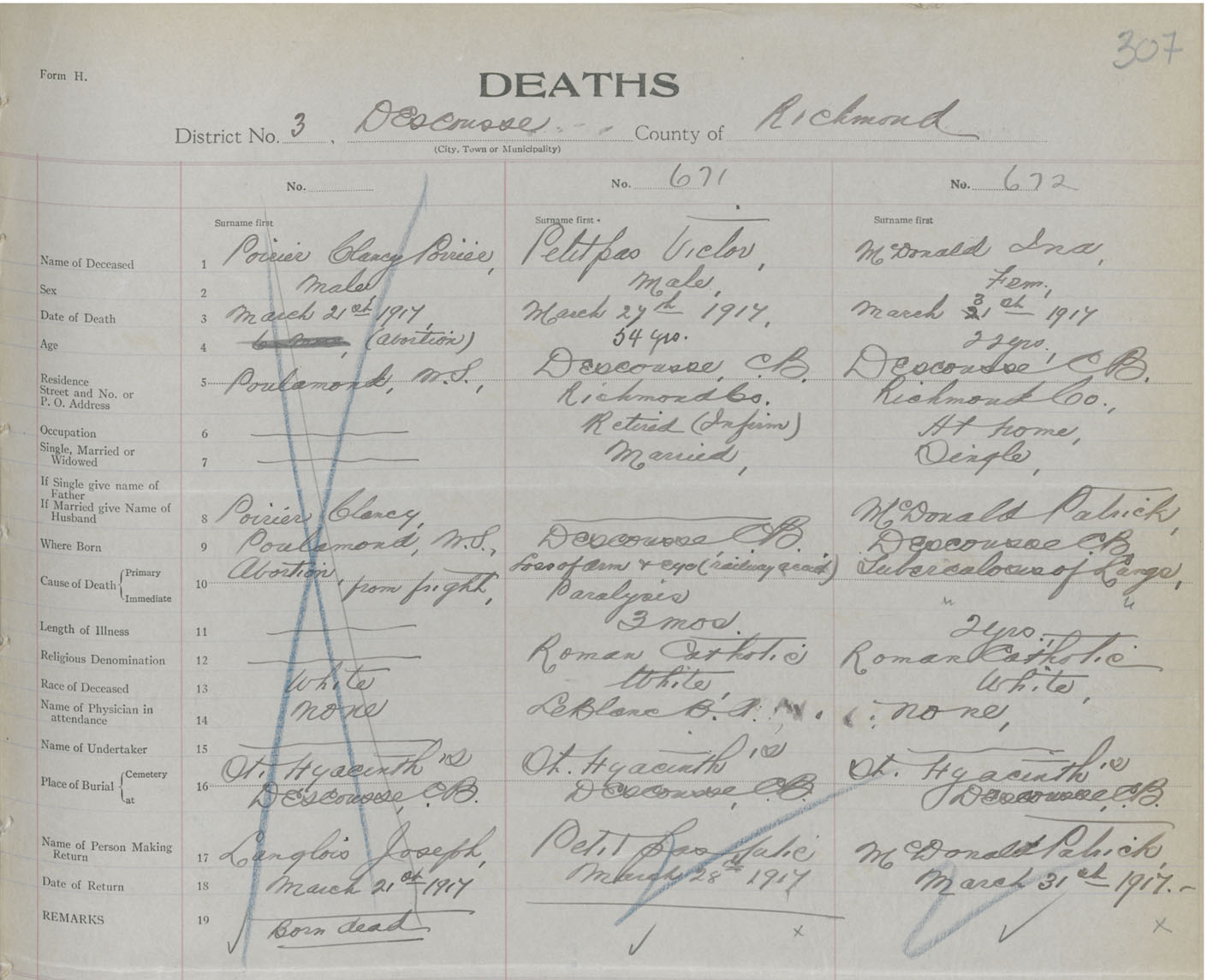 Male Death Registration: Year: 1917 book: 47 page: 307 number: 671