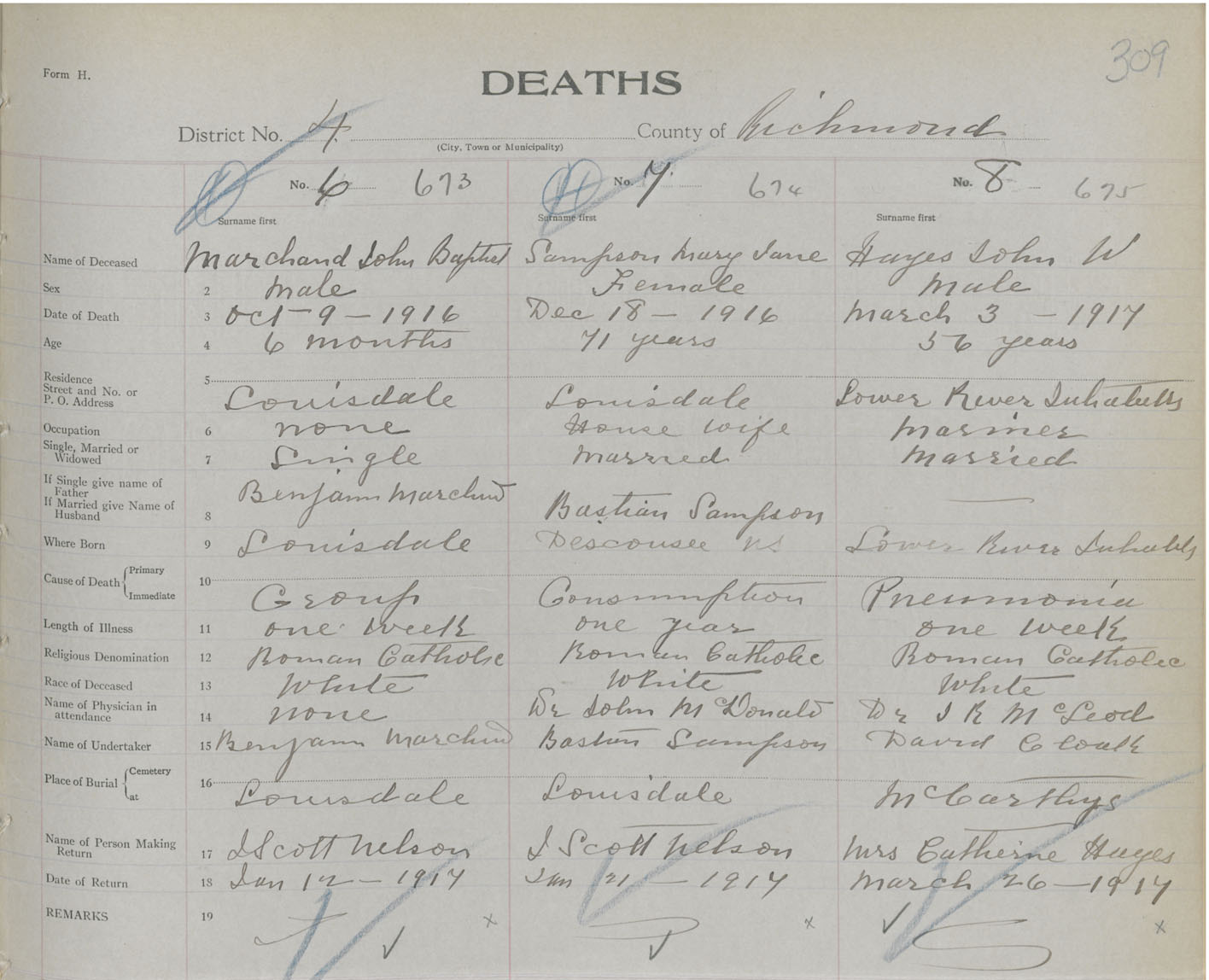 Male Death Registration: Year: 1916 book: 47 page: 309 number: 673