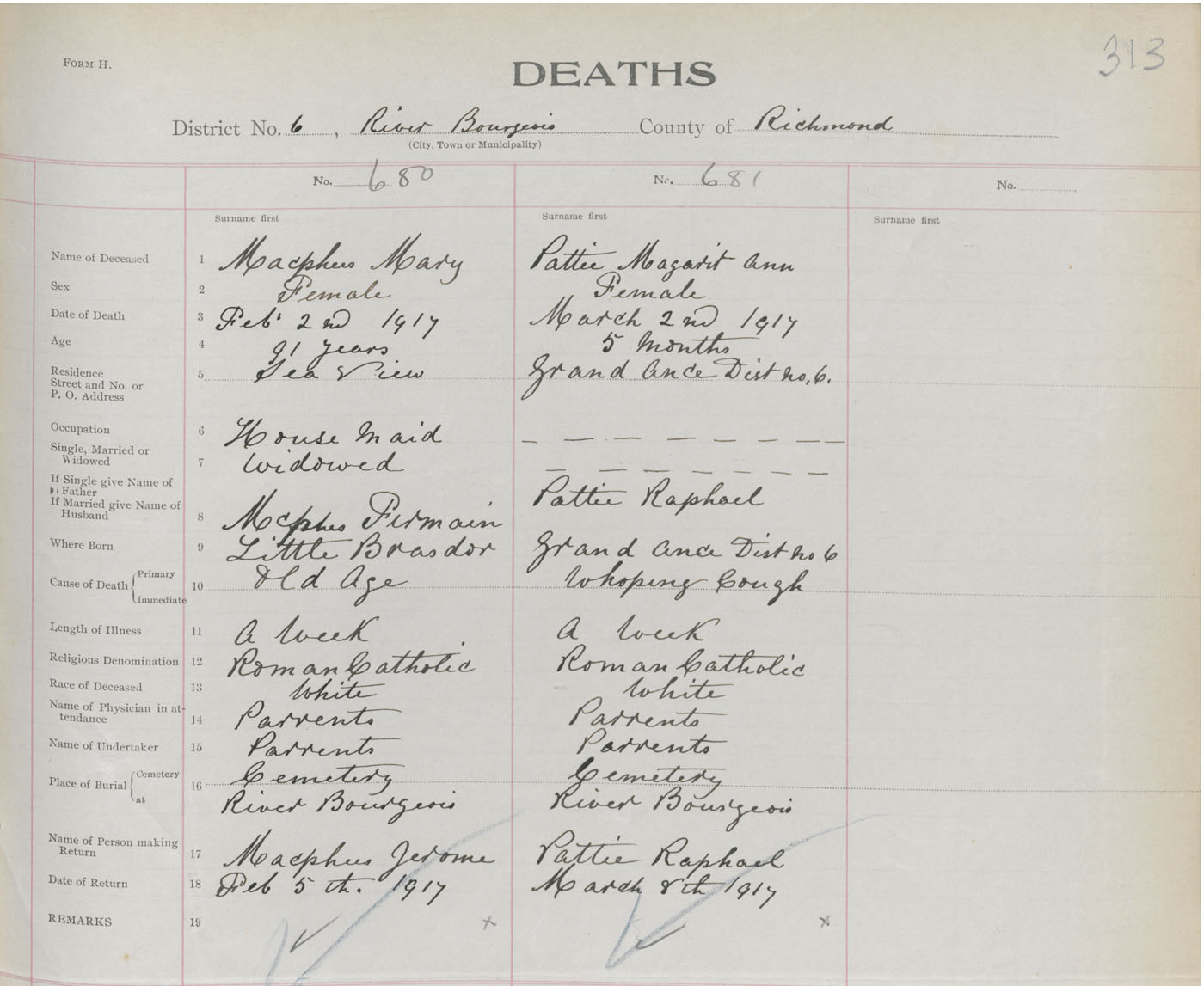 Female Death Registration: Year: 1917 book: 47 page: 313 number: 680